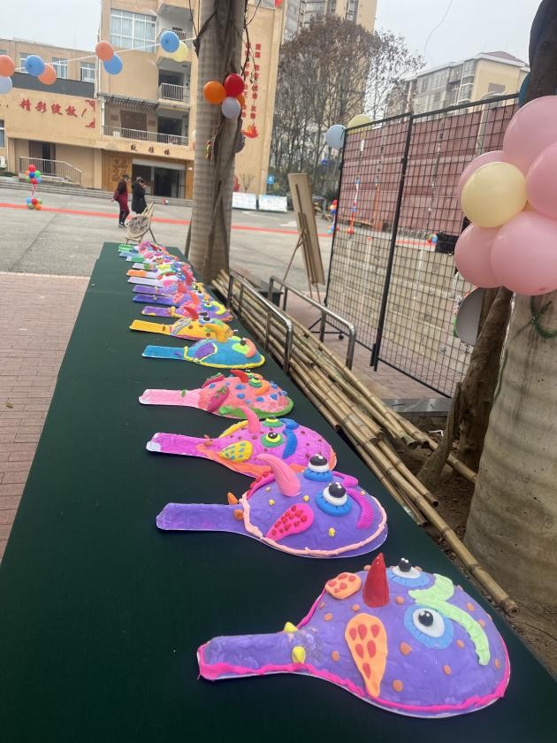 书法展区,低年级学生的楷书端庄工整、笔锋稚嫩,高年级学子的行书对联飘逸洒脱、墨韵十足,“龙腾盛世迎新春,福满校园跟党走”等字句,既饱含对新年的祝福,更抒发了爱党情怀。国画区以写意花卉为主题,牡丹雍容华贵、菊竹清雅脱俗,孩子们以简练笔墨勾勒花叶情态,墨色浓淡间尽显写意画的灵动意境,展现出对传统国画艺术的初步领悟。泥塑区紧扣马年主题,一匹匹小马憨态可掬,有的昂首奔腾、有的温驯伫立,孩子们用指尖赋予黏土生命力,细节处的纹饰刻画尽显巧思,彰显着丰富的想象力与创造力。