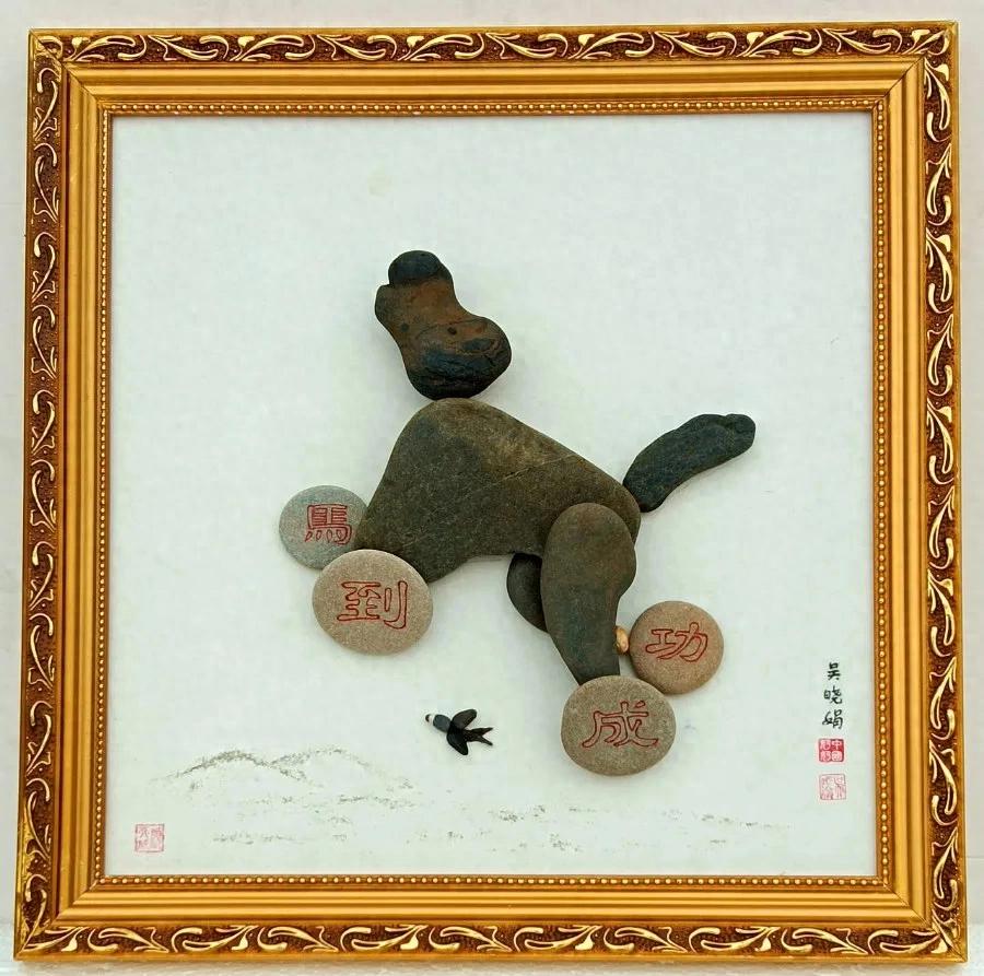 农历马年即将到来,遂宁市非遗项目涪江赏石艺术代表性传承人吴晓娟,精心创作涪江奇石贴画作品《马到成功》《福盈门》为祖国和人民送上祝福。
