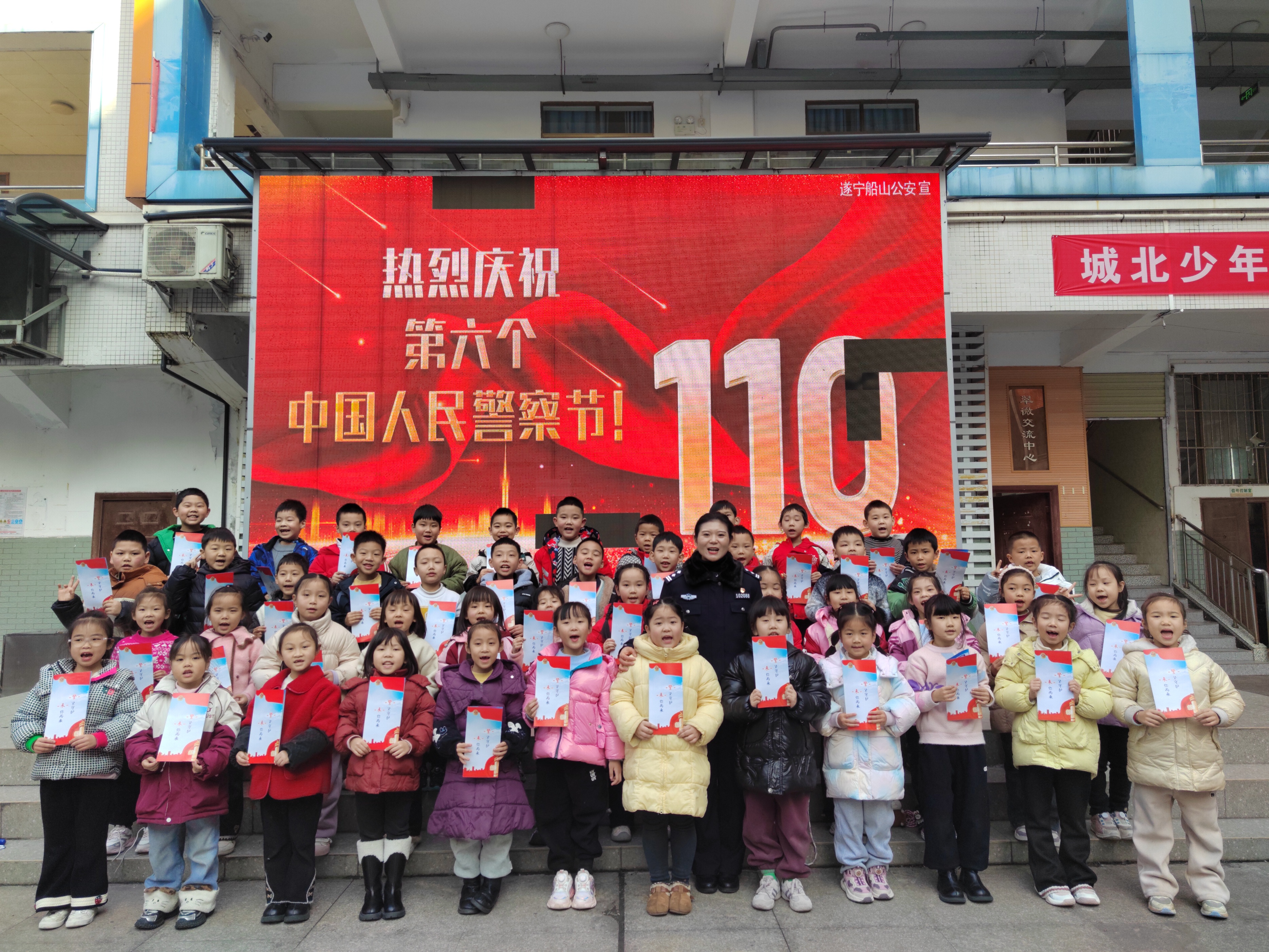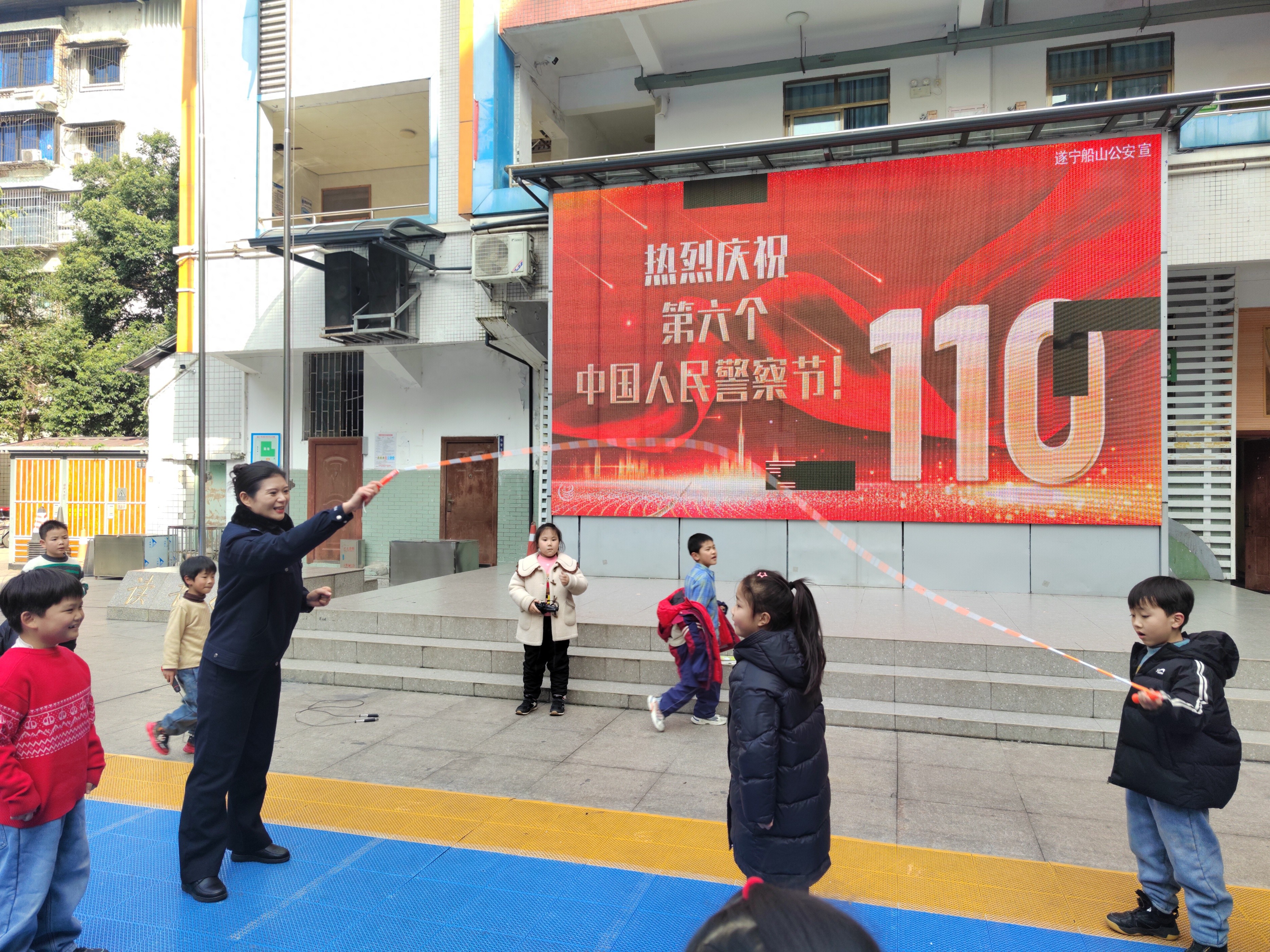 在第六个中国人民警察节即将到来之际,为进一步深化警校联动,将法治关怀与安全守护精准送达青少年身边,近日,遂宁市船山区介福路派出所副所长曾娜带领民警一行走进城北小学,以趣味游戏互动结合法治宣传的形式,为孩子们送上了一场别开生面的“安全成长礼”,让警徽在童真岁月中闪耀温暖光芒。