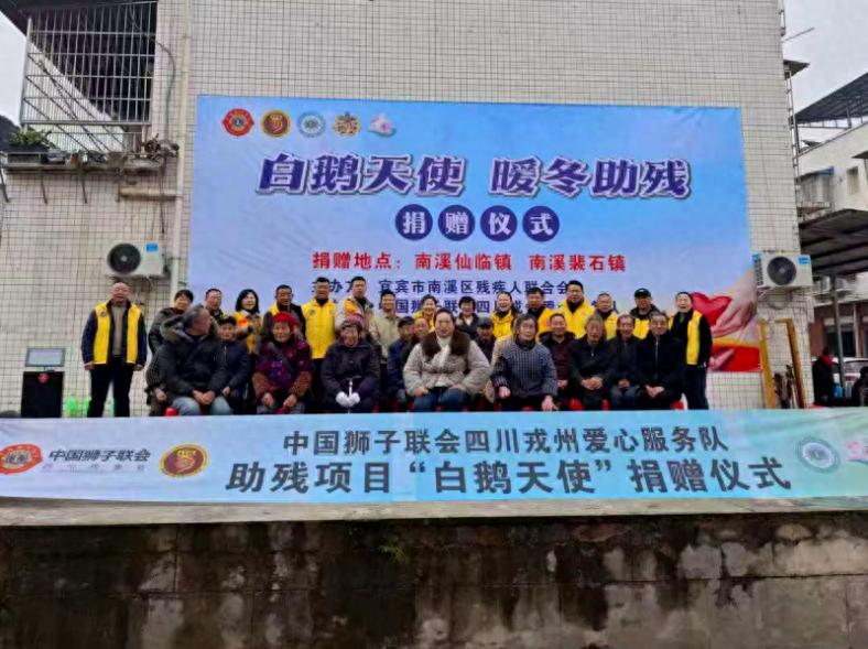 为深入贯彻落实惠残助残政策,持续巩固残疾人脱贫攻坚成果,助力残疾人乡村振兴事业发展。2026年1月8日,宜宾市南溪区残疾人联合会理事长何再春带领工作人员前往仙临镇同兴村,参加了由中国狮子联会四川戎州爱心服务队组织的白鹅捐赠仪式。