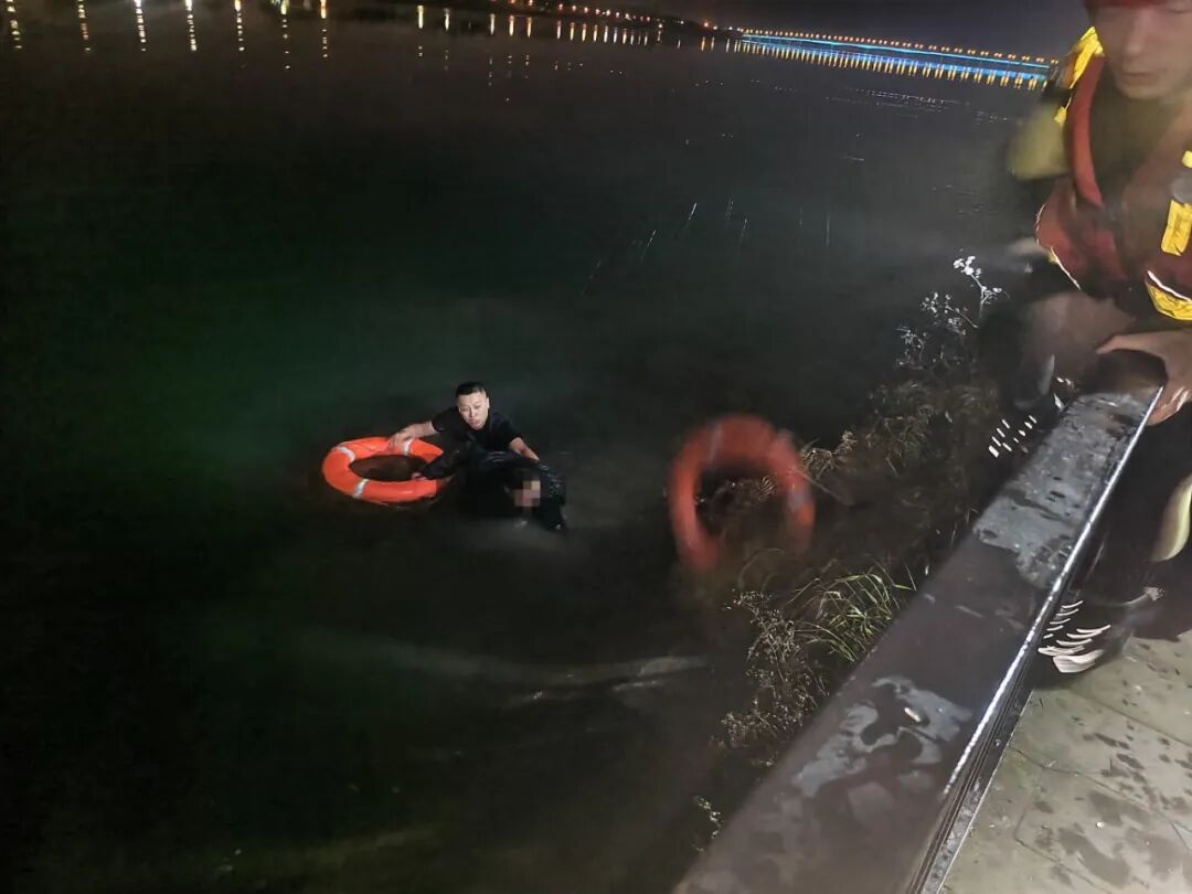 民辅警迅速将携带的救生圈抛向男子