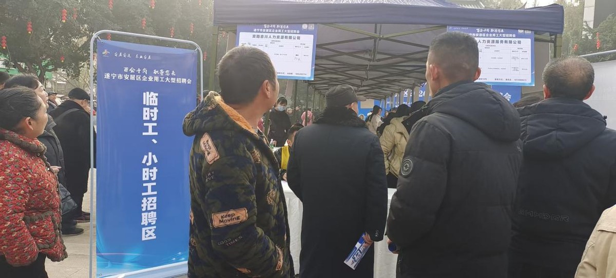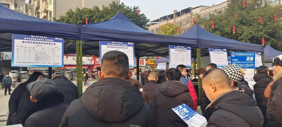 2026年1月13日,遂宁市安居区人力资源社会保障局组织遂宁天齐、四川相源、四川江淮、四川川味里等国营企业、上市公司、大型民营企业近50家,在安居城区头陀寺广场开展“百企千岗·职等您来”大型招聘活动,本次活动提供涵盖体系工程师、行政文员、普工、临时工等610个优质就业岗位,吸引各类求职人员600余人进场求职、咨询。