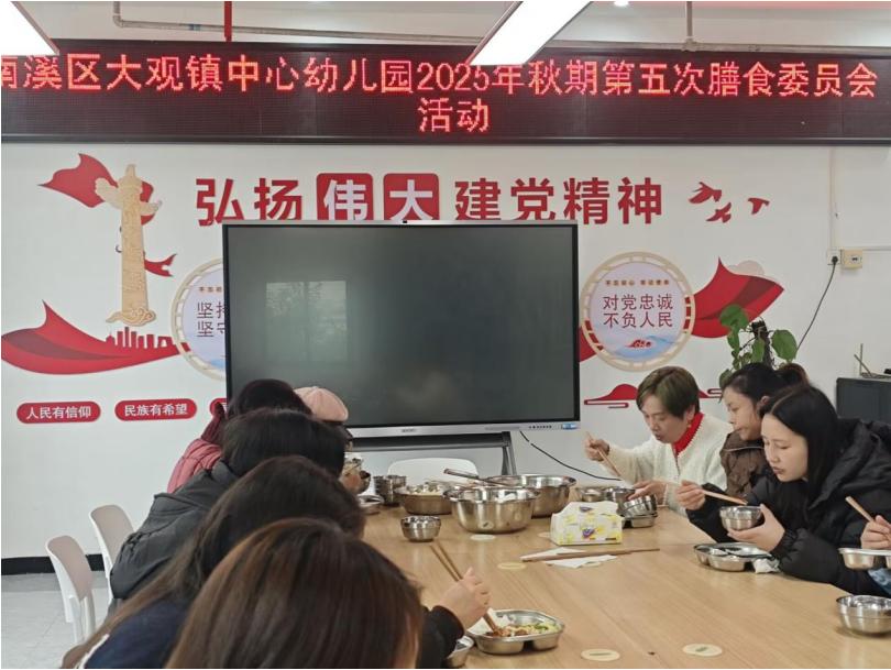 为保障幼儿膳食营养均衡,提升伙食管理透明度,2026年1月14日,宜宾市南溪区大观镇中心幼儿园召开2025年秋期第五次膳食委员会会议,园领导、教师代表、家长代表及后勤人员参会,聚焦幼儿伙食质量与经费使用展开讨论。