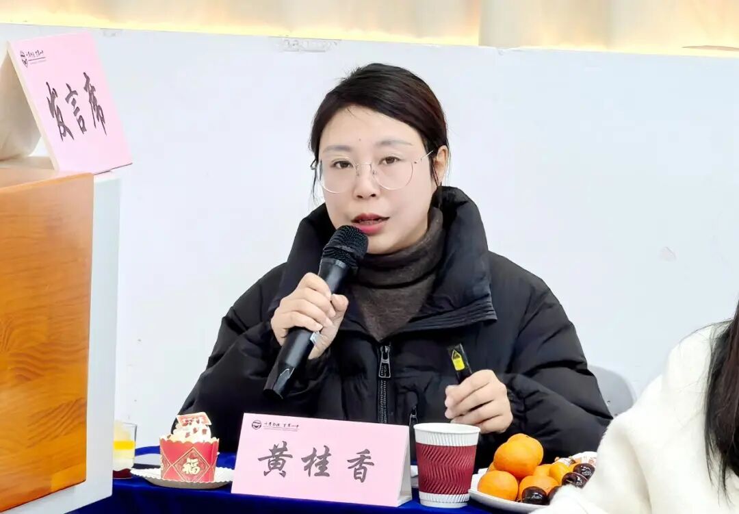 语文备课组长代表黄桂香分享初一年级在“语文学科建设”方面的经验和成果。她强调,初一年级语文组着力构建精准教研体系,积极开展主题研讨,精心打磨课例,将教学重心聚焦于学生核心素养的培养。还构建了融合培养体系,深化阅读教学,加强写作指导,搭建多元平台。对语文学科的未来发展,黄桂香指出,语文组将深化课程改革,充分发挥信息技术的优势,为语文教学注入新的活力。