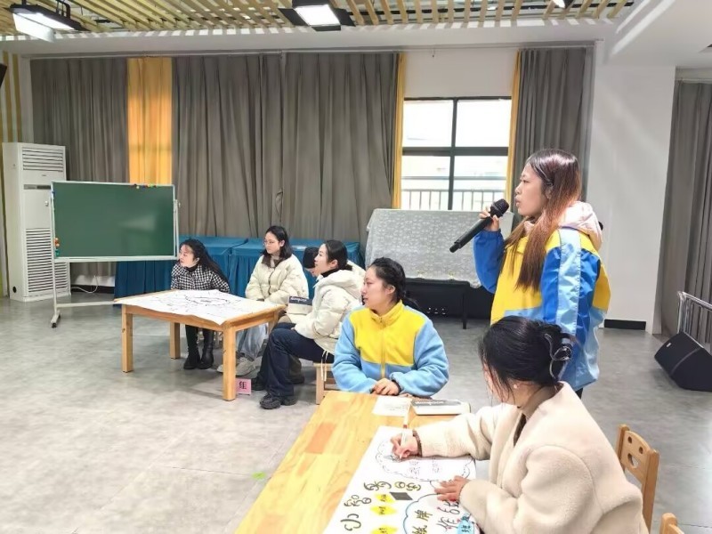 活动以“问题引领—理论学习—深度探究—动手实践—梳理提升”为脉络有序展开。活动伊始,趣味破冰游戏“数字炸弹”点燃全场氛围,紧接着进入理论学习环节,随后,南溪区北城幼儿园教务主任董文学抛出“区域活动中数学游戏的开展与面临的挑战”这一核心议题,引发教师们分组热烈讨论,积极分享。在深度探究环节,该园教师们分小组围绕“区域数学游戏的设计”展开研讨,在思维碰撞中迸发诸多精彩观点与创意。各小组还结合研讨成果现场设计并展示了富有创意的区域数学游戏案例,在动手实践中切实提升了游戏设计与组织能力。最后,各组互评、梳理总结,提炼出可落地的实践策略,为后续开展区域数学游戏活动指明了方向。