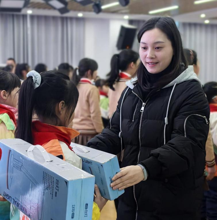 随着热烈的掌声响起,“爱心助学包裹”发放环节正式开启。20名受助学生代表怀着激动的心情,在老师的引导下有序登台。与会领导嘉宾将装满爱心台灯的包裹递到孩子们手中,指尖的温度传递着满满的关怀。接过崭新的台灯,孩子们的脸上绽放出灿烂的笑容,眼中闪烁着对知识的渴望与对未来的憧憬。