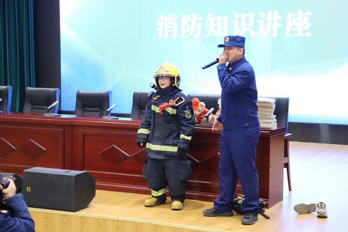 活动中,消防员为同学们举办消防安全讲座,通过真实案例讲解防火逃生知识,并发放宣传手册。活动现场展示了避火服、灭火防护服的穿戴演示,以及呼救器、灭火器、绝缘钳等装备的使用方法。在实操环节,消防员指导学生们连接消火栓与水枪,并进行射水体验,帮助其掌握基础操作技能。