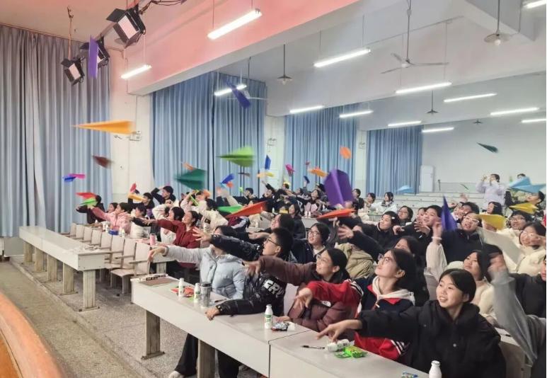 活动的最后环节,“纸飞机的梦想与烦恼”将氛围推向高潮。南溪区第四中学校学生们拿起纸笔,认真写下自己近期的烦恼或心中的梦想,随后将纸张折成纸飞机。在老师的引导下,大家一同将纸飞机奋力放飞。小小的纸飞机承载着学生们的心声,飞向远方,也象征着烦恼的释放与梦想的启航。