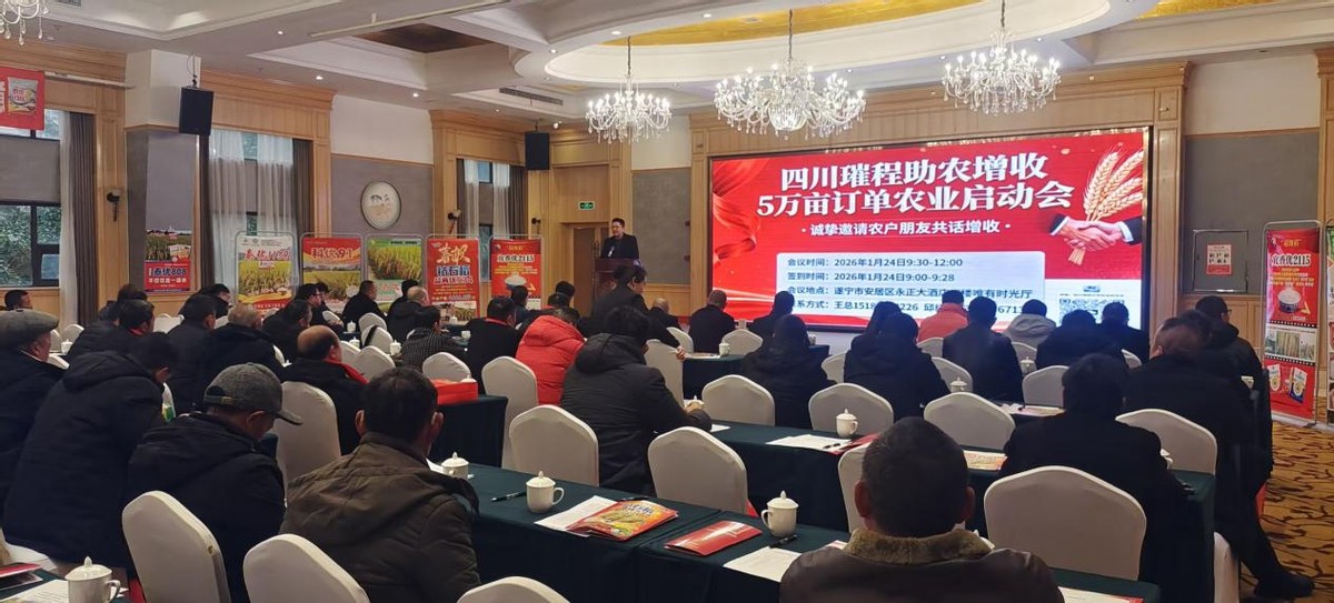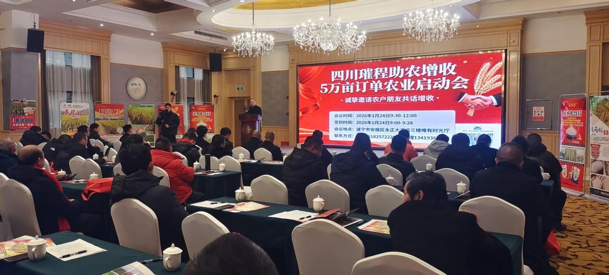 1月24日的遂宁安居大地,寒气袭人,来自川内外的涉农企业及行业精英汇聚永正大酒店,共同见证由四川璀程企业管理咨询服务有限公司主办的助农增收订单会。