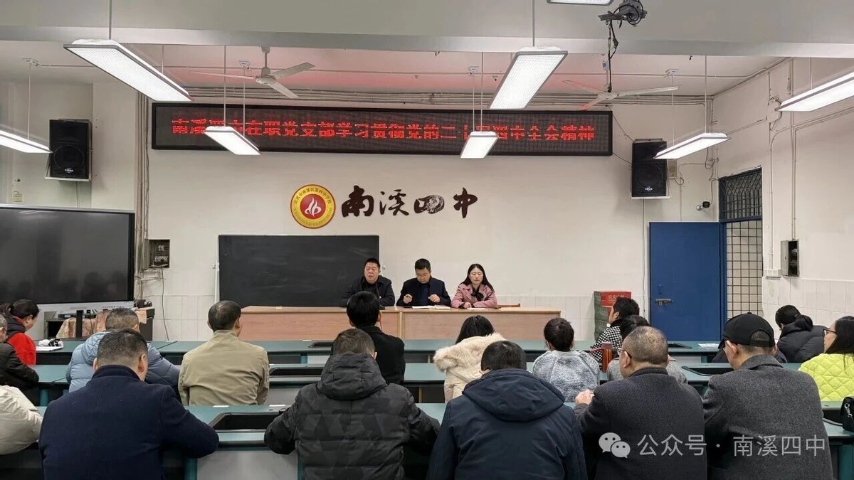 南溪区第四中学校持续强化思想政治建设,深入学习贯彻党的二十届四中全会精神,推动党建工作与教育教学、校园文化深度融合。通过专题学习、主题实践,筑牢信仰之基,确保了教育事业发展的正确方向,为培养担当民族复兴大任的时代新人奠定了坚实的思想基础。