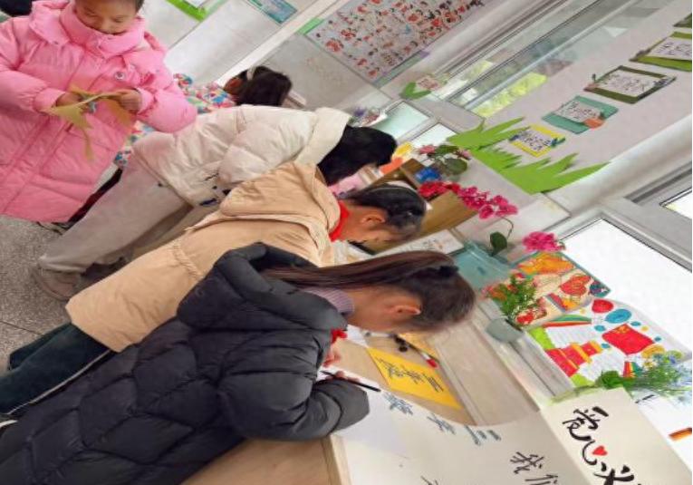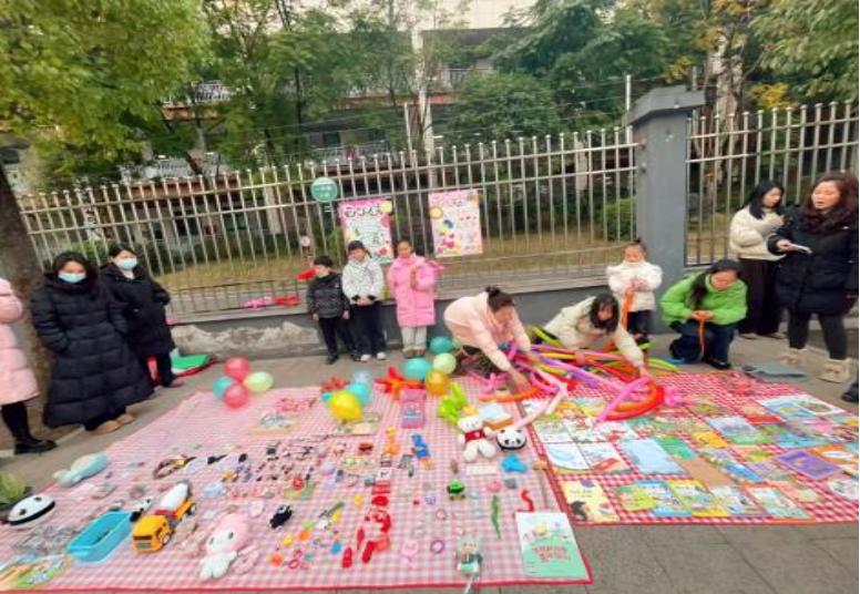 下午快放学时,班级家长代表们赶到学校,与孩子们一同布置活动场地。大家分工明确:有的将书籍整齐排列在地毯上、玩具分类展示,有的悬挂宣传海报,吸引过往师生目光,有的悬挂彩色气球营造温馨氛围……在众人协作下,原本空旷的场地变成了充满温情的公益空间。