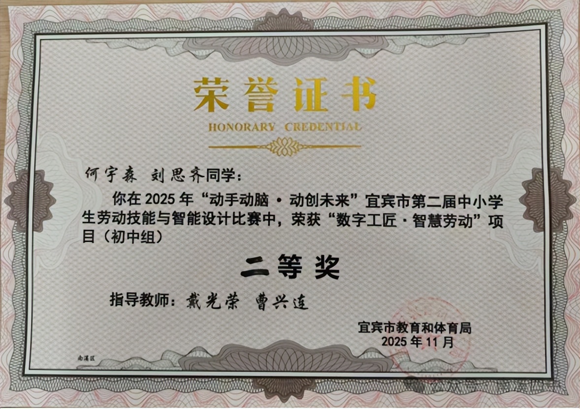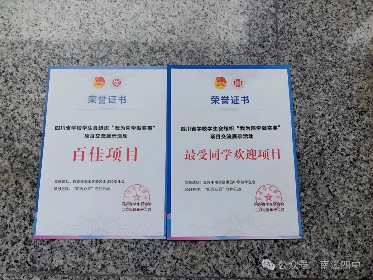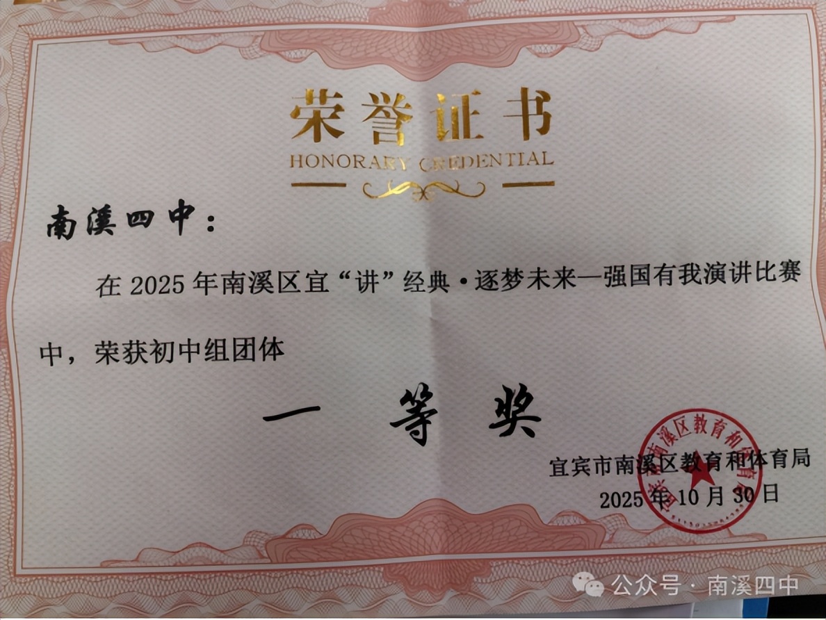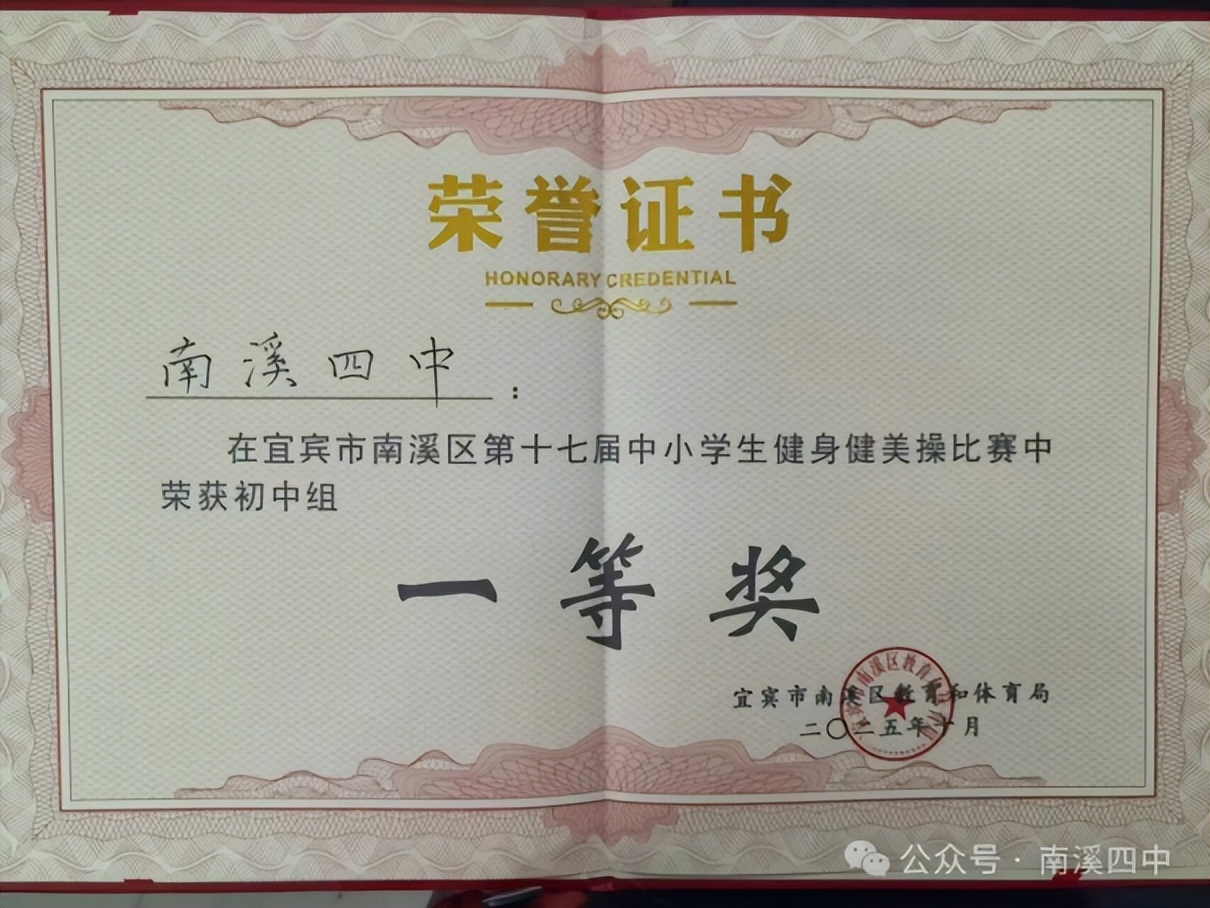南溪区第四中学校坚持“五育融合”育人理念,通过举办“五育并举”优秀学生表扬大会、第十四届校园文化艺术节、体育节、年级运动会等丰富多彩的校园活动,以及“河小青”志愿活动、红色研学、非遗进校园等主题实践,全面滋养学生的家国情怀、文化自信与综合素养。在此扎实的基础上,学生于各级各类竞赛中屡创佳绩,充分展现了全面发展的优良成果:在德育与智育领域,曾雯静同学荣获区“宜‘讲’经典·逐梦未来”演讲比赛一等奖,张馨玥同学获第二十届中国中学生作文大赛(四川赛区)省级二等奖;在体育竞技赛场,该校荣获宜宾市第五届中小学生大课间体育活动评选市级一等奖,该校女子篮球队、男子排球队、女子排球队分别在区级比赛中夺得第一名、第二名的优异成绩,羽毛球队、田径队也均获得区级比赛前列名次;在美育方面,洛笙合唱团荣获第三届西部学校音乐周展演中学组二等奖,学校健美操队斩获区级比赛一等奖;在劳动与科技创新中,何宇森、刘思齐两位同学在宜宾市第二届劳动技能大赛数字工匠.智慧劳动创新赛项目中获二等奖。同时,学校持续筑牢心理健康防线,学校团委学生会“阳光心灵”守护行动获评省级“最受同学欢迎项目”,为学生的健康成长提供了有力支撑。