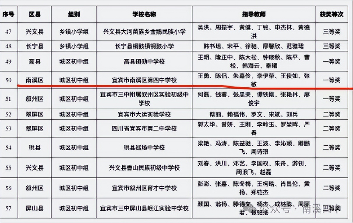 本年度,南溪区第四中学校教育教学质量综合考评荣获南溪区一等奖。在2024-2025学年教学质量奖评选中有114人次获奖,其中一等奖57人次、二等奖33人次、三等奖15人次、提高奖9人次。这些沉甸甸的荣誉,是南溪四中全体师生凝心聚力、共同奋斗的最好证明。