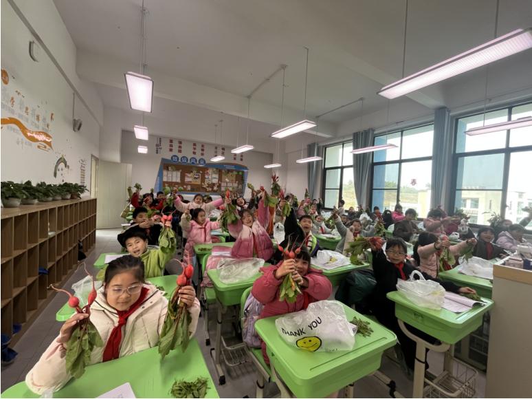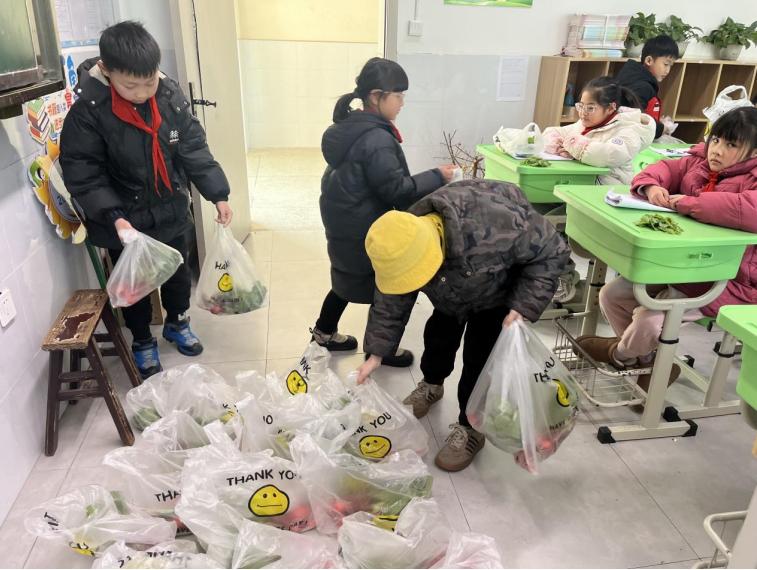 劳动归来后,南溪区福临小学校三年级3班全体师生回到教室,一起将新鲜的蔬菜分装打包。同学们脸上都洋溢着满足的笑容,当带着泥土气息的蔬菜被送到每位同学手中时,教室里充满了欢声笑语。