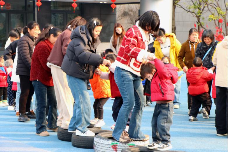 小螃蟹运球、亲子走轮胎、集福气等趣味游戏有序开展,家长与孩子亲密携手、默契配合,小心翼翼地完成各项挑战,在轻松愉悦的互动中尽享运动乐趣,清脆的欢声笑语洒满整个操场。