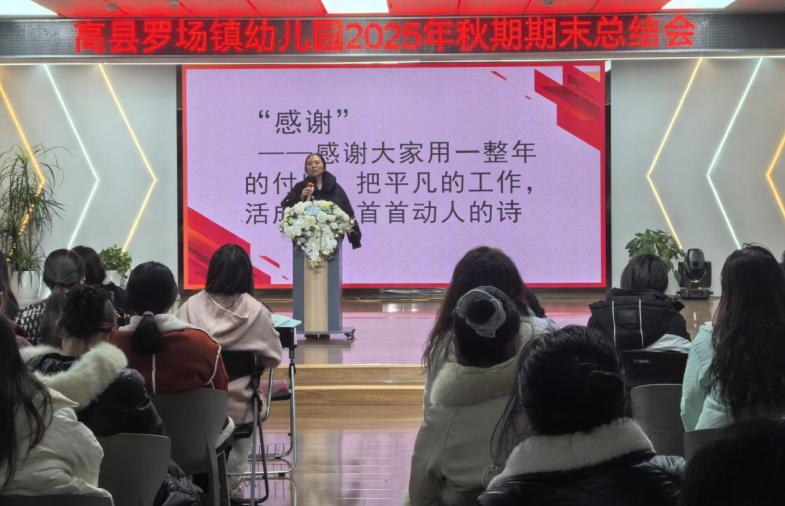 时光荏苒,岁月沉香。为复盘过往实践、汇聚前行力量,2026年1月30日,高县罗场镇幼儿园召开了2025年秋期期末总结会,共同回望耕耘路,共绘未来新蓝图,本次会议由幼儿园园务主任惠莉主持,两园区全体教职工参加。
