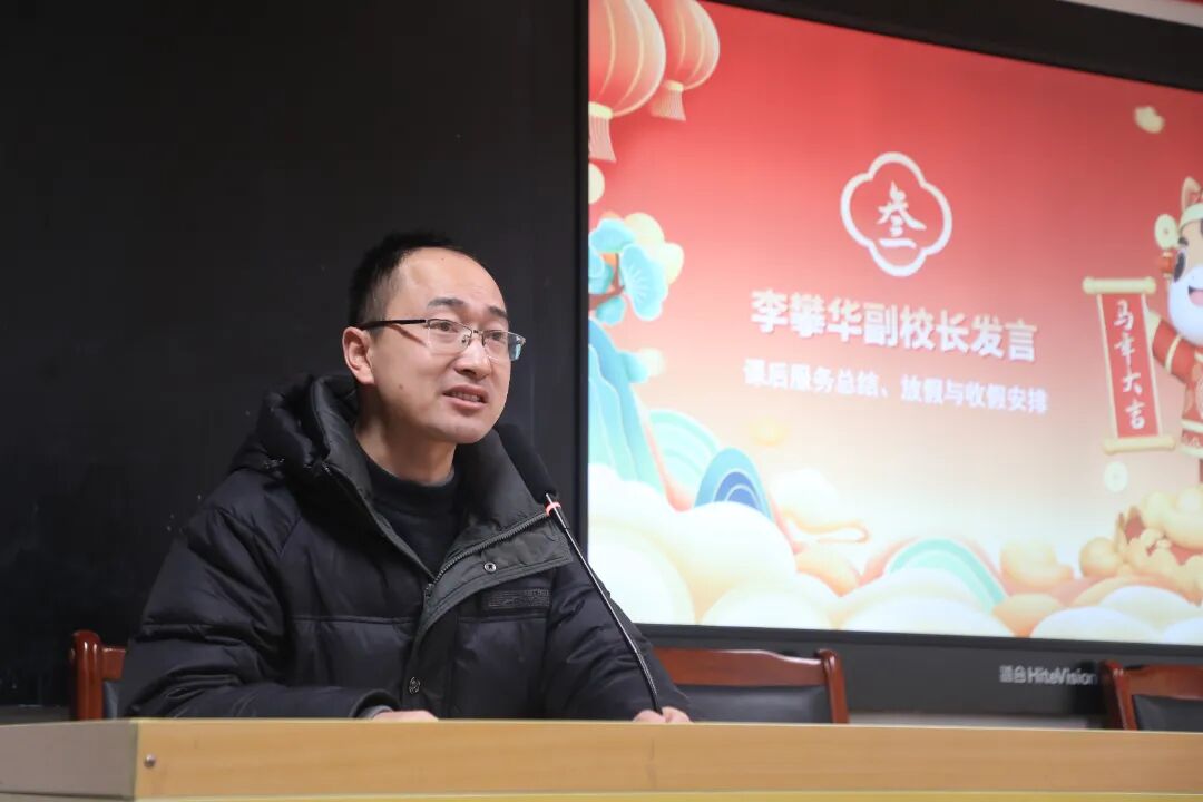 副校长李攀华对本期课后服务工作进行了系统总结,并就寒假安排与新学期开学准备工作作了详细部署。他指出,本学期课后服务在课程设置、师资调配、安全保障等方面均取得显著成效,但仍存在个别课程质量不高、内容与学生兴趣点结合不够紧密等问题。他要求寒假期间结合学生反馈与教学实际,进一步优化课程体系,提升课程设计与教学实施能力,确保新学期课后服务质量再上新台阶。