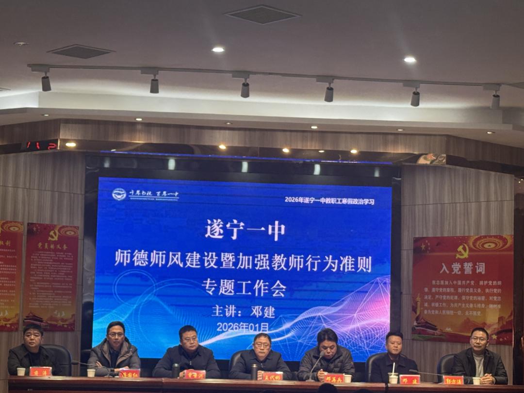 寒假如期而至,育人初心不辍。为筑牢师德师风建设根基,凝聚家校共育合力,遂宁一中近日组织全体教师开展寒假政治学习,专题研习四川省系列教育政策文件,同步部署2026寒假家访活动,以专业赋能与温情陪伴护航学生成长。