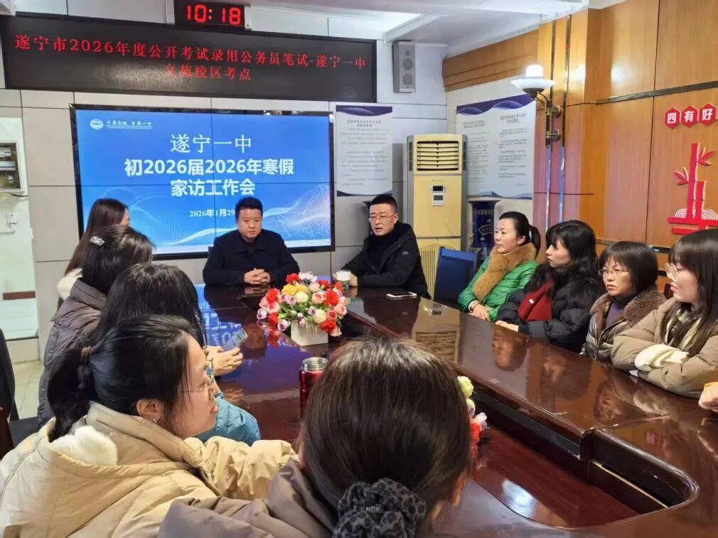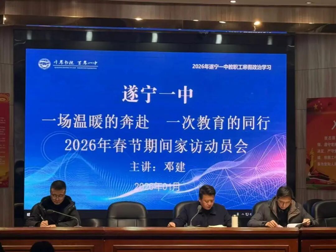凛冬虽寒,暖意不减;教育有温度,家访有力量。为深化家校协同育人,搭建心与心的沟通桥梁,全面了解学生的成长环境与真实需求,凝聚育人合力,为孩子们的健康成长保驾护航,2026年1月29日,遂宁一中召开家访动员大会,副校长邓建围绕家访安全、廉洁、意义三大核心,为本次家访工作指明方向、明确要求。他强调,安全是家访工作的底线,全体教师务必提高安全意识,做好出行安全;他要求家访过程中要坚守廉洁底线,不接受家长任何形式的馈赠,以真诚、务实的态度开展沟通,维护教育的纯粹与尊严;他希望通过家访走进学生、倾听家长,全面掌握学生课堂之外的成长轨迹,让教育更有针对性、更有温度,真正实现“家校同心,共育成长”的育人目标。