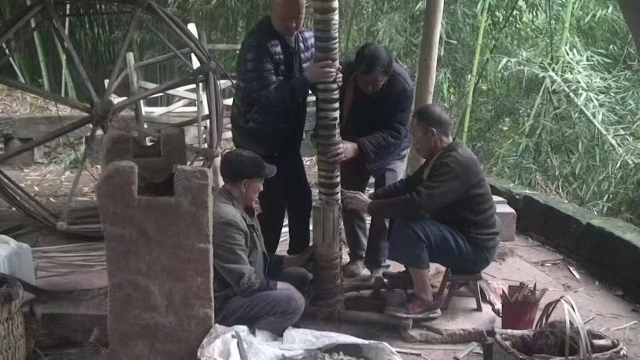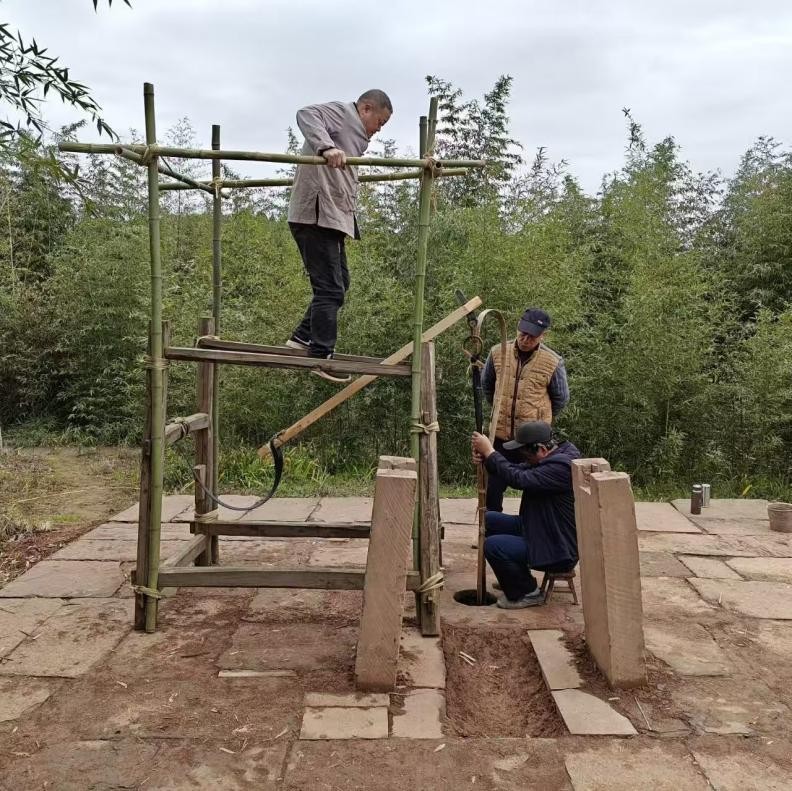 卓筒井文明研究会恢复古法凿井下固井石圈