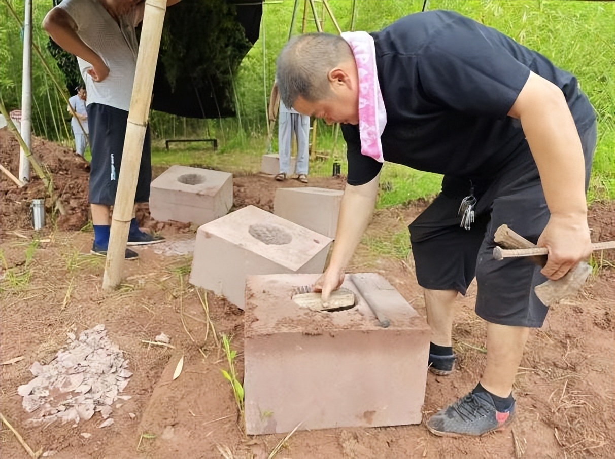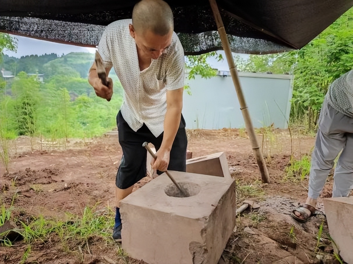 卓筒井文明研究会恢复古法凿井石匠打制石圈