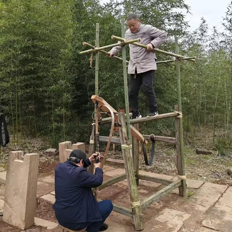 卓筒井文明研究会恢复古法凿井碓板吊环与圜刃木鞭安装方法
