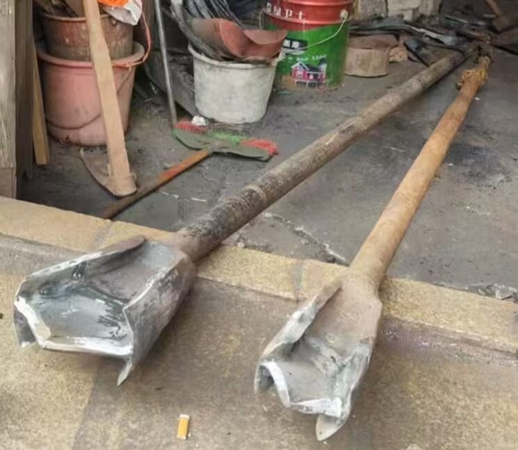 卓筒井文明研究会恢复古法凿井铁铺打制凿井大大令牌头,小令牌即圜刃