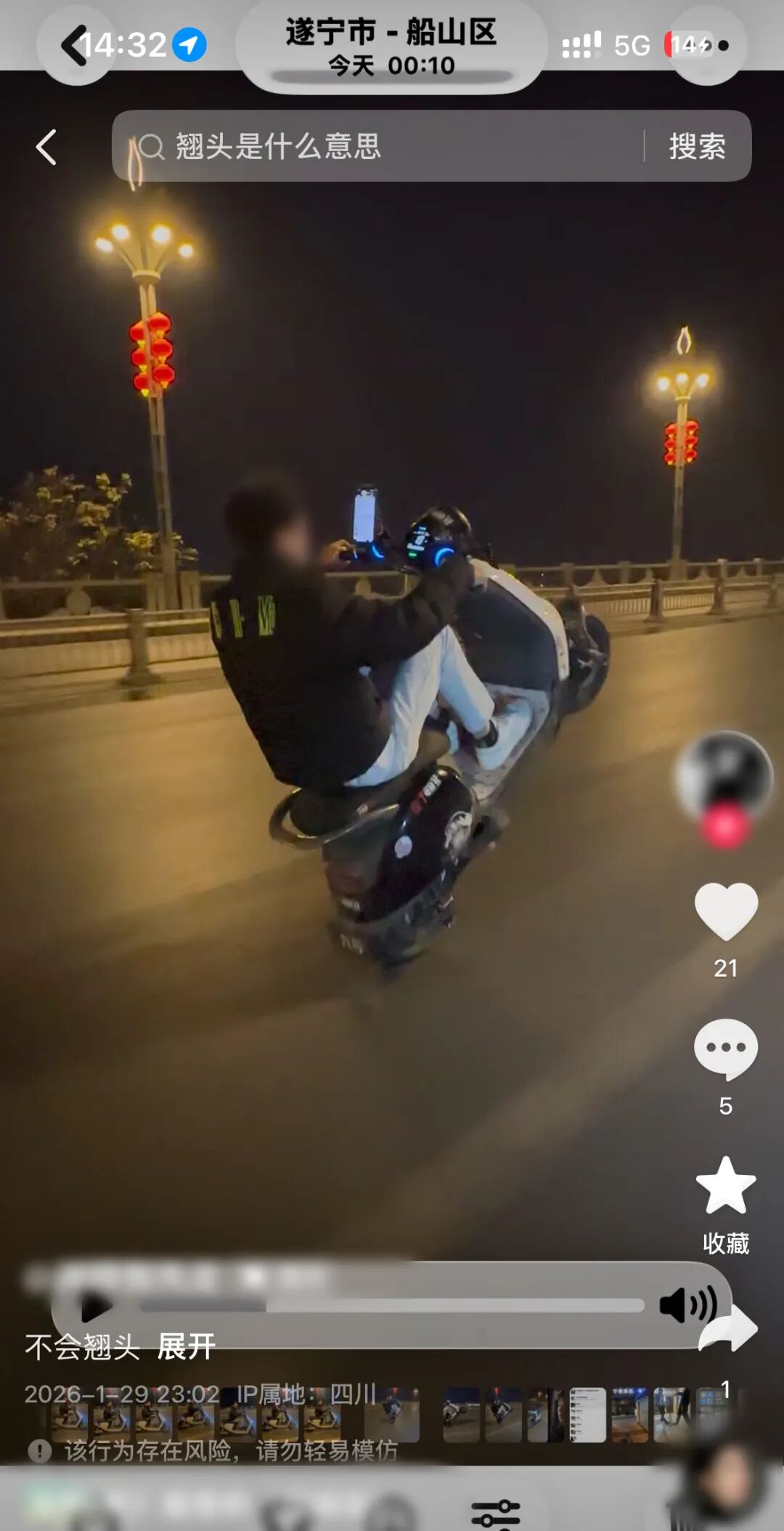 电动自行车本是便捷的出行工具,却有人将其变成“耍酷”道具把马路当成了危险“秀场”。近日,遂宁公安宣传部门在网络巡查时发现一段危险视频在社交平台传播,一名男子驾驶电动车在市城区机动车道内不顾来往车辆,肆意做出“翘头”行驶的危险动作,仅靠后轮支撑车身前行在车流中穿梭自如动作惊险万分,严重影响道路交通安全。