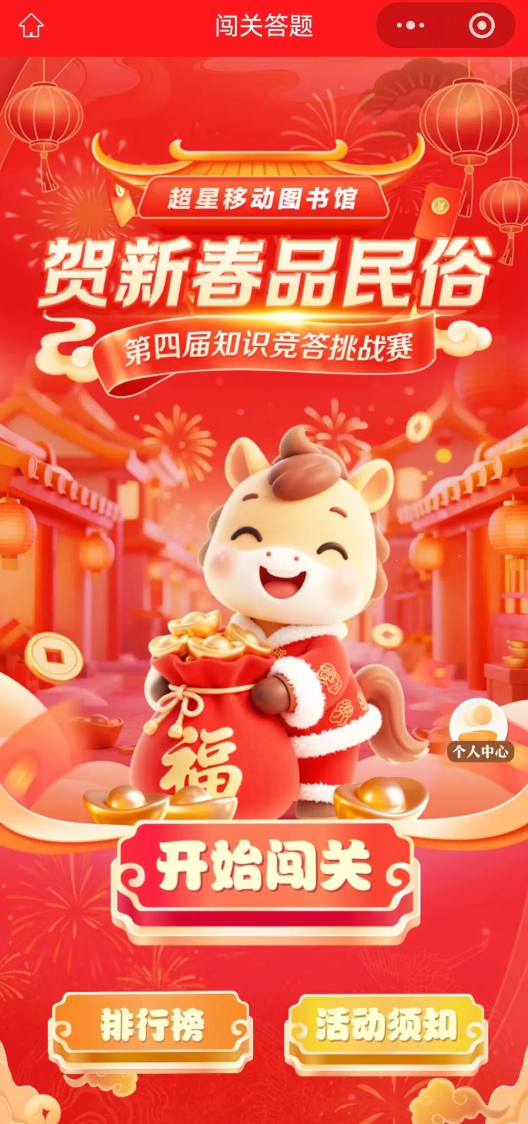 活动主题:“贺新春 品民俗”超星移动图书馆第四届知识竞答挑战赛”