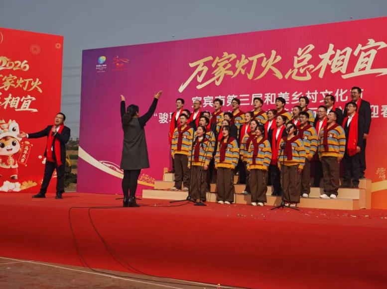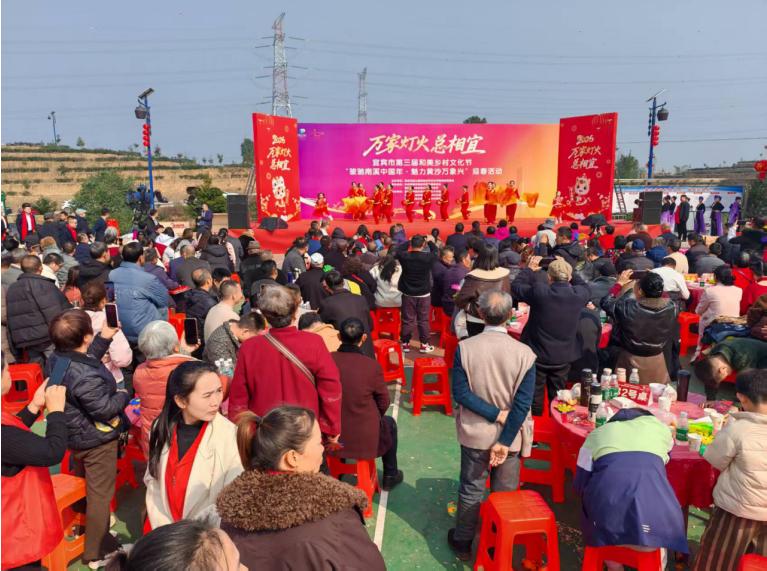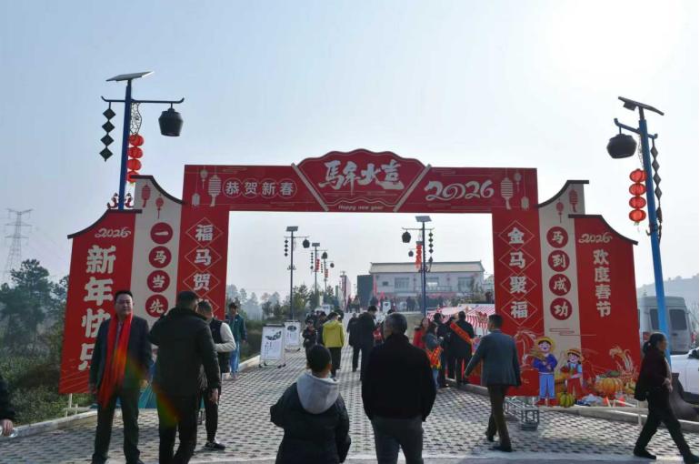 为深入推进乡村振兴战略,持续丰富群众精神文化生活,传承传统年俗、凝聚乡情乡愁,促进农文旅深度融合,2026年2月6日(农历腊月十九),宜宾市南溪区第三届和美乡村文化节“骏驰南溪中国年·魅力黄沙万象兴”迎春活动在黄沙镇田兴村茶文化体验中心广场热闹启幕。此次活动由宜宾市第三届和美乡村文化节南溪区组委会主办,宜宾市南溪区黄沙镇党委、宜宾市南溪区黄沙镇人民政府承办,活动吸引了当地干部群众、游客齐聚一堂,共赏乡村美景、共品乡土年味、共话乡村新貌。