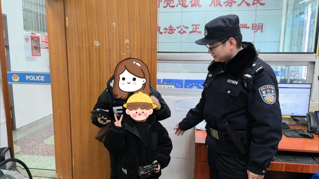 就在民警通过监控排查期间,派出所接到了另一通报警电话——孩子的妈妈发现孩子不见了,焦急地报警求助。民警当即与孩子家长取得联系,确认了双方关系。当家长赶到派出所,看到孩子安然无恙时,激动地抱住孩子,连声向民警道谢。