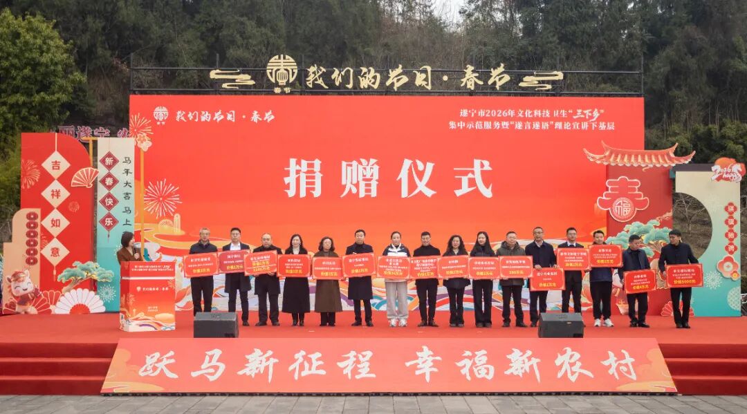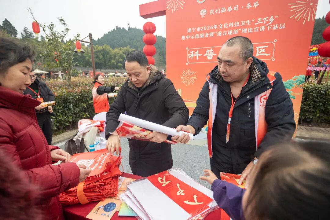 据了解,遂宁市2026年文化科技卫生“三下乡”系列活动于2月7日正式启动后将持续贯穿全年,在遂宁市全域村镇开展,主要有“文艺轻骑兵”文化下乡活动、“科技大赶场”科技下乡活动、“爱心服务团”卫生下乡活动、“为民办实事”集中捐赠活动、“新春送温暖”惠民服务活动等近3000场,力求为广大农村基层群众带去更多的服务和实惠。(来源:遂宁文联/遂宁全媒体 刘文诗/文 吴奉家/图)