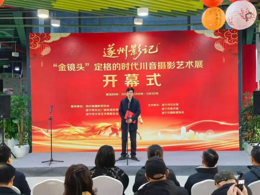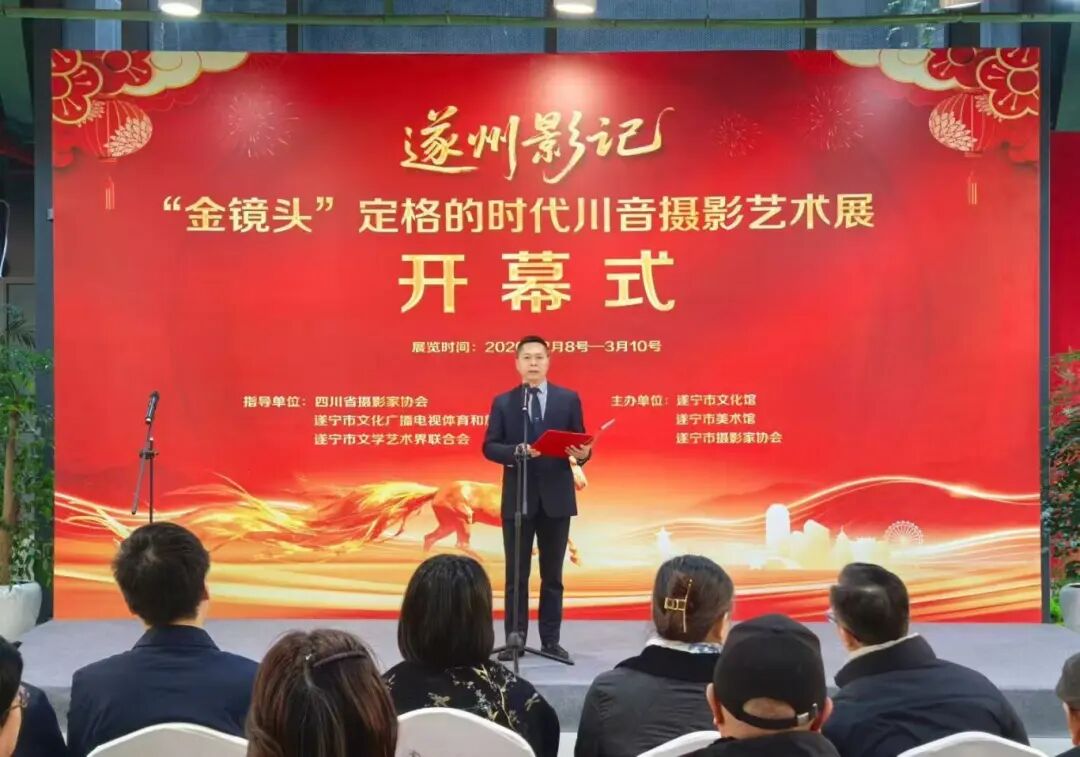2月8日,由四川省摄影家协会遂宁市文化广播电视体育和旅游局/遂宁市文学艺术界联合会指导的《遂州影记》 ——“金镜头”定格的时代 川音摄影艺术展在遂宁市文化馆正式开幕。