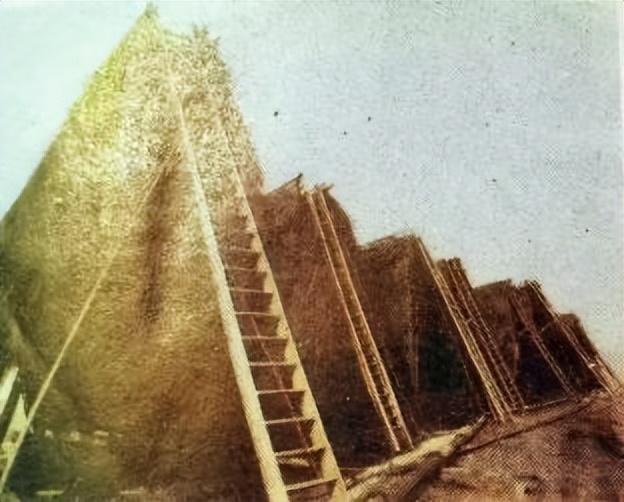 2:为发炉,用淡卤倾入潢浸泥土制作成砖块,层层叠叠堆砌于灶尾的高一丈围径三丈的发炉内,通过灶煎盐时余火余温熏干卤水泥土制作砖块,反复又以新咸卤水泼淋发干发红的泥土砖块,经过一个月后将发炉内咸度积聚非常高泥土砖块取出击碎装入潢内用卤水浸析出高浓度盐卤水以后即可煎制成盐。