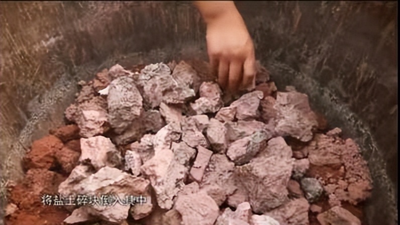 1将井汲盐卤水澄清过滤后,2转勺至温水锅加热令沸腾再转至盐锅,3如制花盐必须使用与加入豆浆汁或菩提树果子水熬煮才能形成盐晶颗粒状态,4如制熬巴盐则必须在煎煮中加入花盐数十斤以及新鲜浓度高的盐卤水才能逐步形成块饼状态,5巴盐分薄巴盐约五公分厚,6厚吧则有十五公分厚之区别。