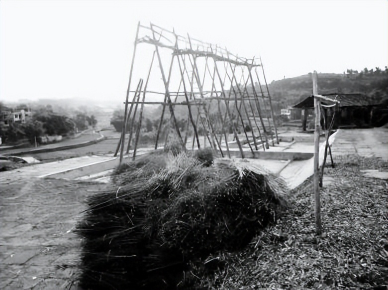 枝条架的建造,在推广初期十分讲究,首先设计制图,由专职木匠、土工匠,按图施工。为了防止枝条架被大风吹倒,设计用8m以上长度的粗重圆木穿逗制作成上窄下宽12柱落脚的灯笼架,立于地面的石头礅上,架的两面各层挂满荆竹枝,一般的都是有5-6层浓缩卤源时用传统的灌溉筒车提升卤源上到枝架上层的天船(楻)内,地面做厚厚一层石灰三合土防漏,但由于盐卤的腐蚀性大,一般三合土是经受不住的,所以经常发生浸漏,经常维修,增大费用,浪费卤源。推广至蓬溪,射洪时,人们根据实际情况,经济而实用的进行改进,枝条架的建造就简单多了。