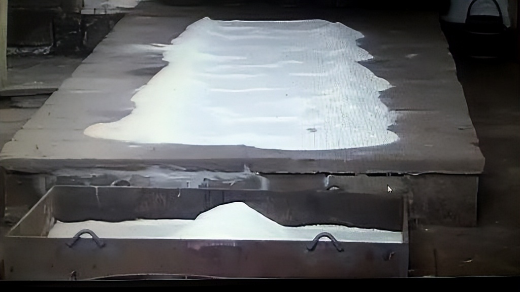 5:为取卤兼;当淡卤煎沸腾时卤兼水必浮在锅面,盐必沉入锅底,将卤兼撇入卤兼锅加火煎沸腾过滤以后,将卤兼水之盐汁勺入盐锅,淘洗数次,其所制之盐则鲜亮洁白。近现代人们又通过意外发现与实践在灶房内部利用烟道余热修建炕盐台使盐品的质量大力提升。