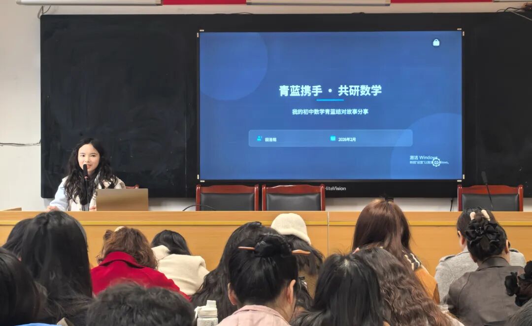 田洛铭老师的分享充满数学学科的灵动与巧思。她讲述了师徒在课前磨课、课上听课、课后复盘、共同“充电”中的深度协作。在教学中,她们创新地将“配方法”比喻为“寻亲记”,建立作业奖励机制,引入AI辅助教学,让数学课“活”起来。她感慨:“从‘心里发怵’到‘从容应对’,青蓝结对让我真正站稳了讲台。”