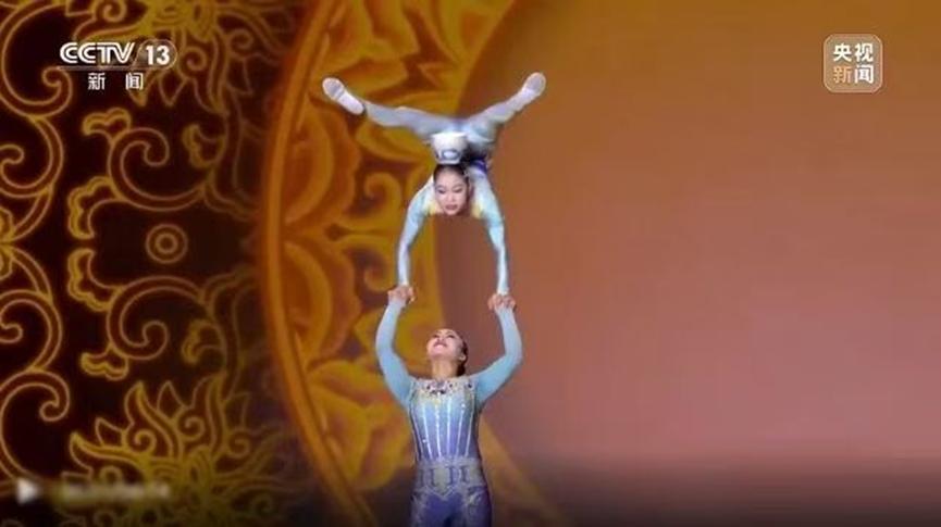 图为央视《新闻联播》报道遂宁市杂技团在中非合作论坛期间表演的节目画面