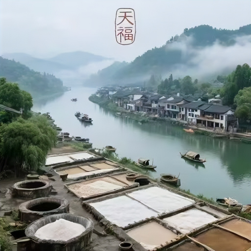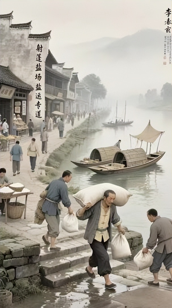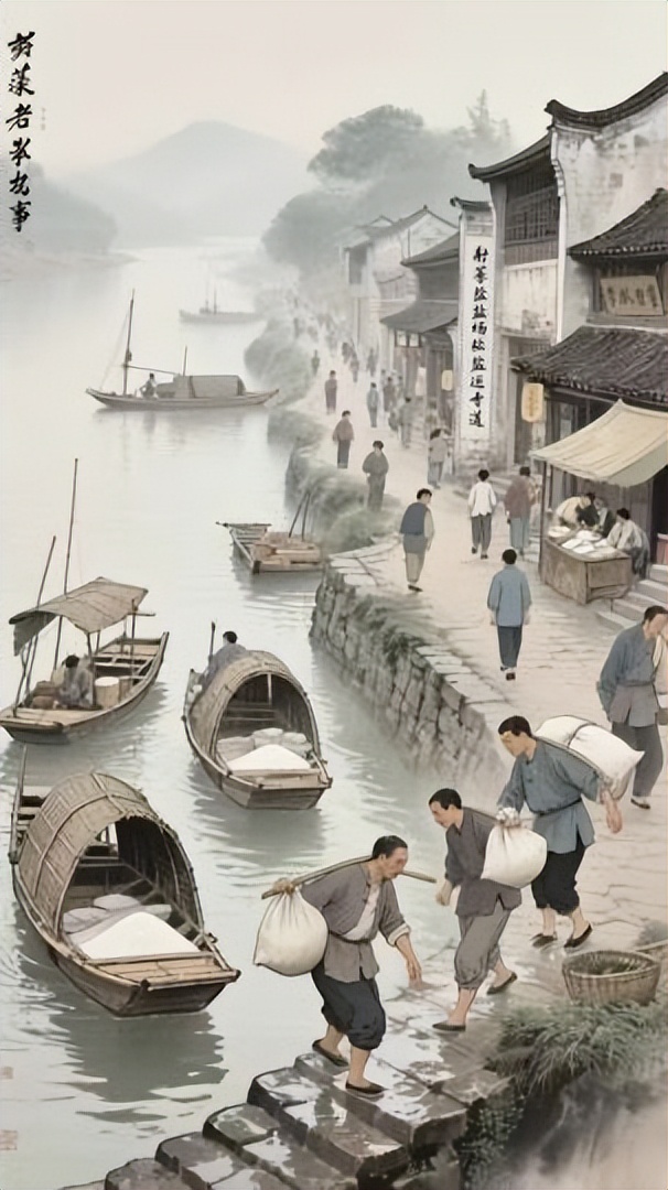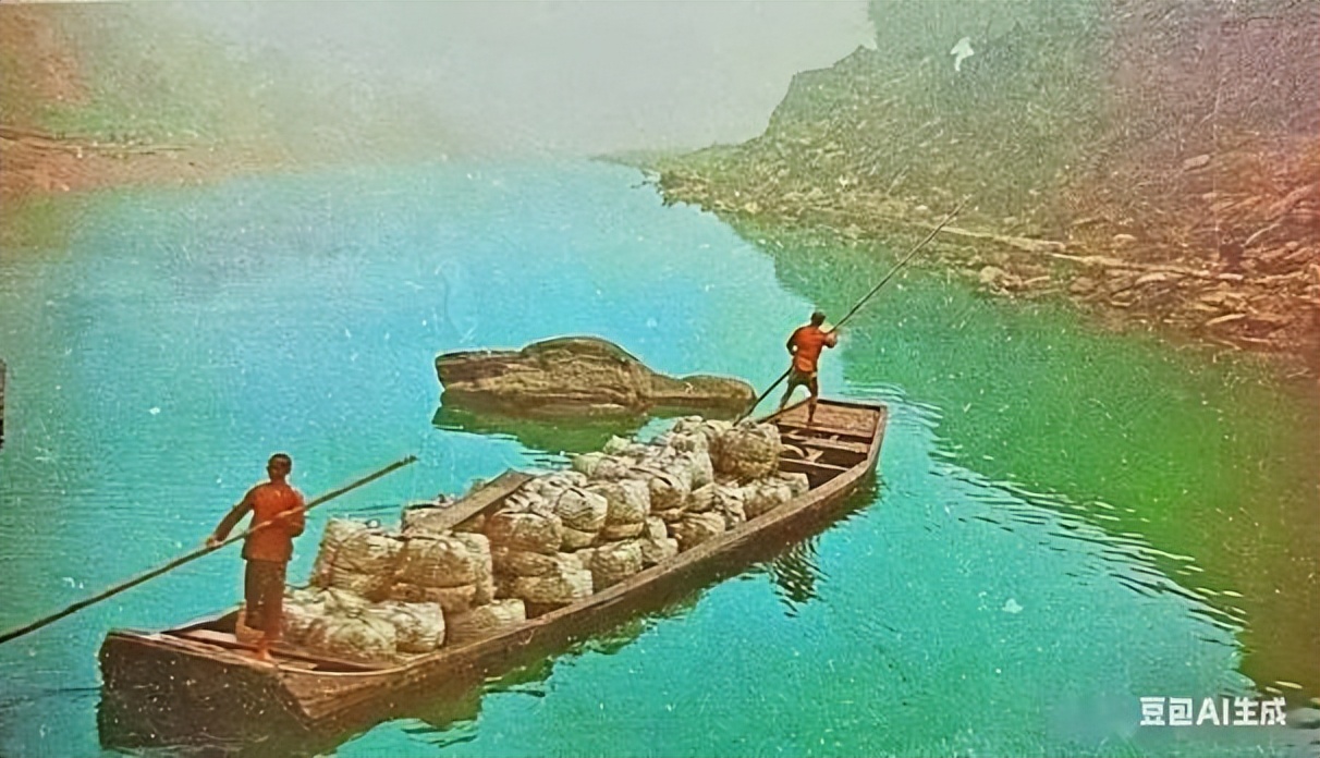 川北井盐行销区域图片(简阳盐场船运盐品至川西销售区域状态)