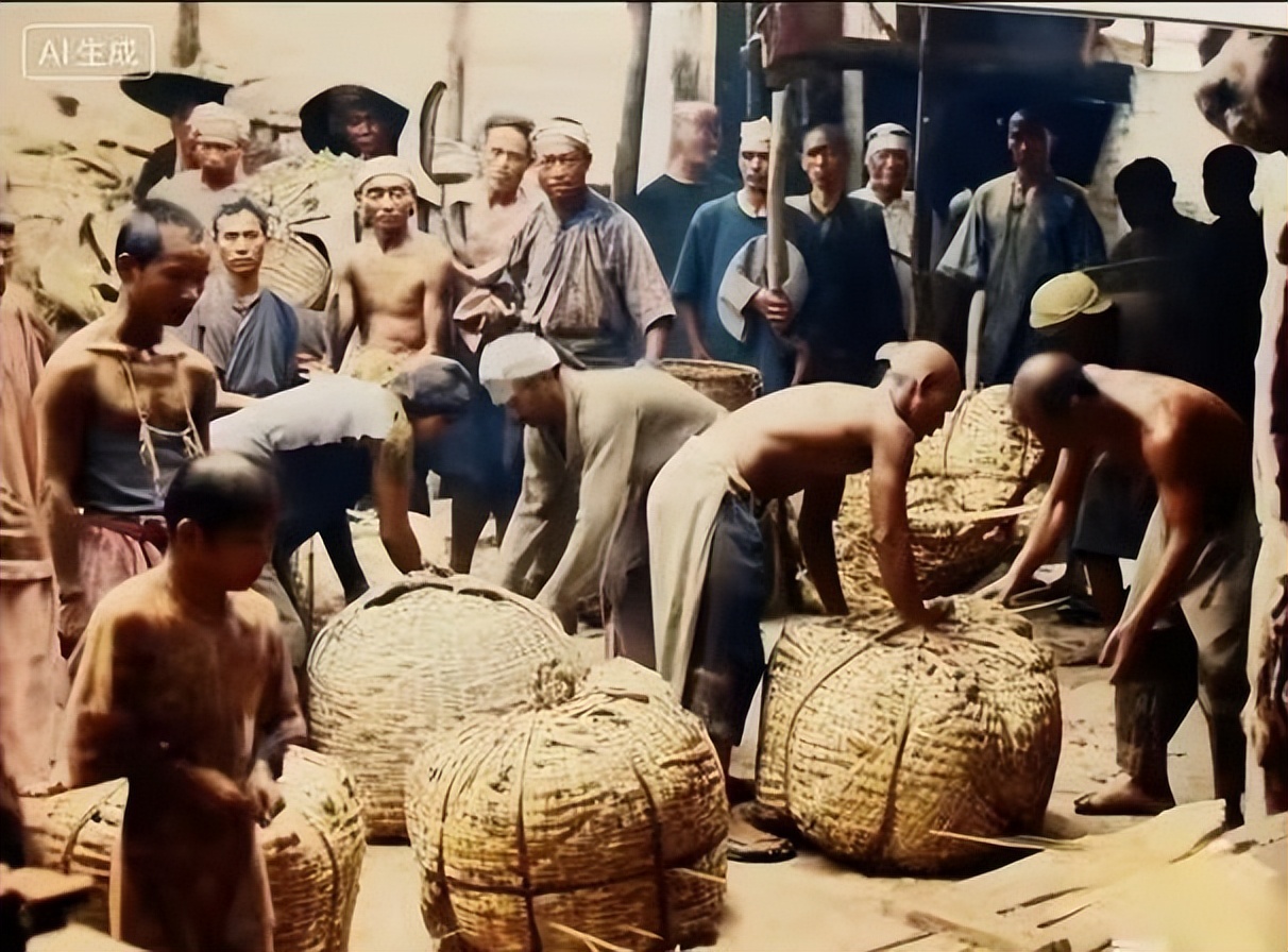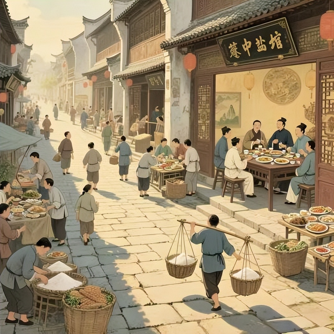 川北井盐行销区域图片(盐场足夫挑运盐品与巴盐售卖状态)