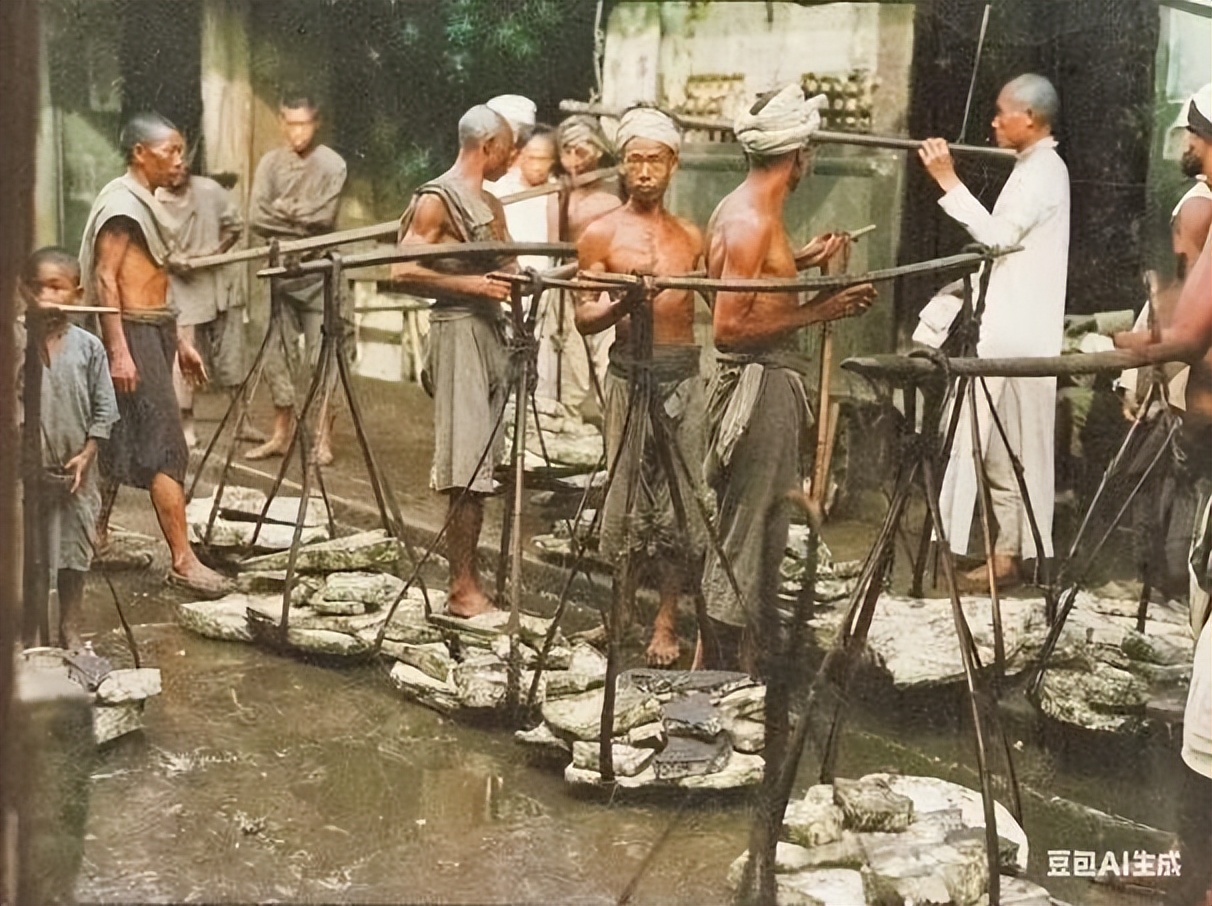 川北井盐行销区域图片(蓬遂盐场足夫挑运盐品入验卡盐垣状态)