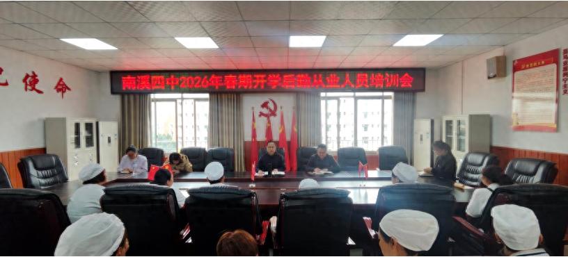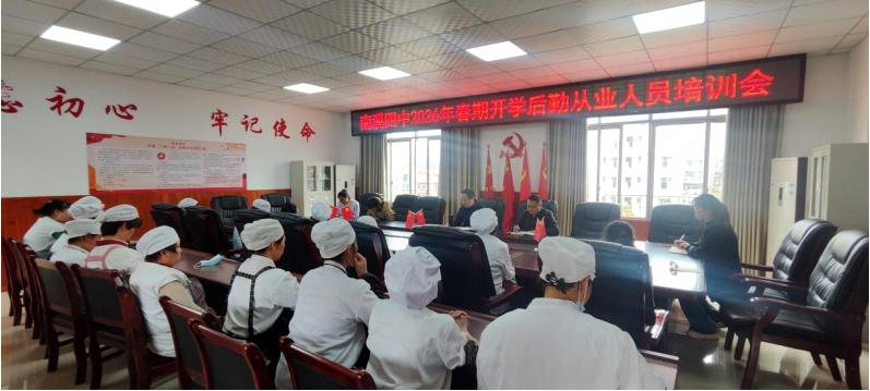 春回大地,万象更新,为切实筑牢校园食品安全防线,保障全校师生饮食安全,宜宾市南溪区第四中学校召开了2026年春期开学食堂从业人员专题培训会。学校对全体食堂工作人员的辛勤付出表示感谢,并就新学期食品安全工作作出全面部署。