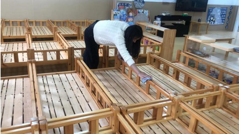 “室”内清新,温馨如家: 高县罗场镇幼儿园各班教师对活动室、睡眠室、盥洗室进行了开窗通风,并对地面、门窗、桌椅、玩具、图书及幼儿床铺进行了全面的清洁与消毒,不放过任何一个细节,力求为孩子们创造一个窗明几净、温馨舒适的“第二个家”。