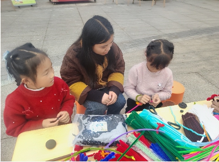 活动现场最吸睛的,莫过于扭扭棒创意手工区。鲜艳柔软的扭扭棒在老师、家长和孩子们的手中翻转、缠绕、造型,不一会儿,一朵朵可爱的小花、一只只灵动的小动物、一个个新春小挂件新鲜出炉。