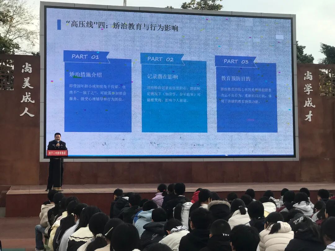 此次讲座将法治教育与安全教育深度融合,让学生深刻认识到法律的严肃性与约束力,既学会用法律武器维护自身权益,也树立了敬畏法律、严守底线的法治意识,还增强了安全防范能力,为营造平安、法治、和谐的校园环境筑牢了坚实基础。(来源:遂宁四中 图/潘镭元)