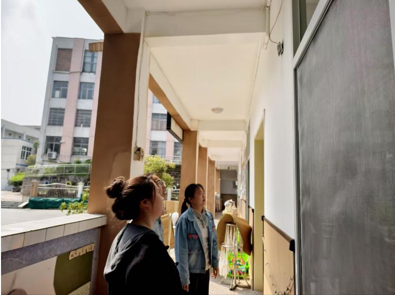 南溪区南溪街道中心幼儿园安保小组成员对幼儿活动室、走廊等公共区域和灭火器、应急疏散标志、应急照明灯等设备设施以及校园周边环境进行全面检查,并将不足之处和问题进行记录和整改。