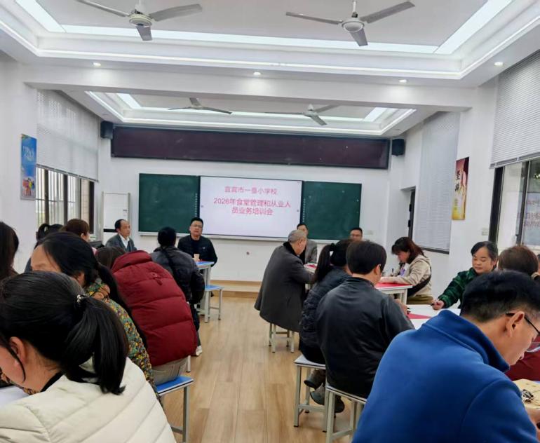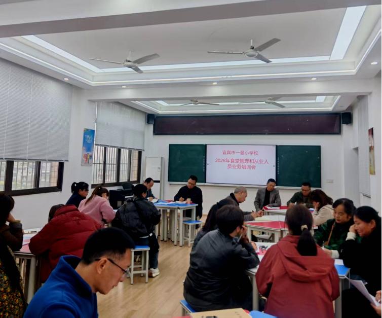 为深入落实校园食品安全管理要求,传承一曼红色办学理念,守护师生健康安全,2026年3月1日,宜宾市一曼小学校召开了食堂从业人员及食品安全员专题培训会。学校食品安全总监、食品安全员、营养办主任及全体食堂工作人员参会,以红色初心筑牢安全底线,为新学期校园食品安全保驾护航。