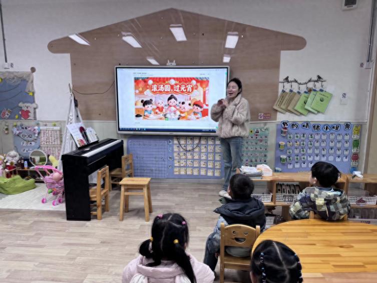 在老师的引导下,孩子们通过“搓、揉、捏”等精细动作,开展了粘土美工《搓汤圆》活动。白色粘土在他们手中变成了大小各异的汤圆,虽然模样稚拙,却饱含童趣。这不只是一次简单的手工课,更是健康领域(精细动作)与艺术领域(美工创作)的有机融合。随后,教室里响起了清脆的童声:“卖汤圆,卖汤圆,小二哥的汤圆圆又圆……”一首《闹元宵》的儿歌,让孩子们在语言领域的节奏韵律中,感受着元宵节特有的喜庆。