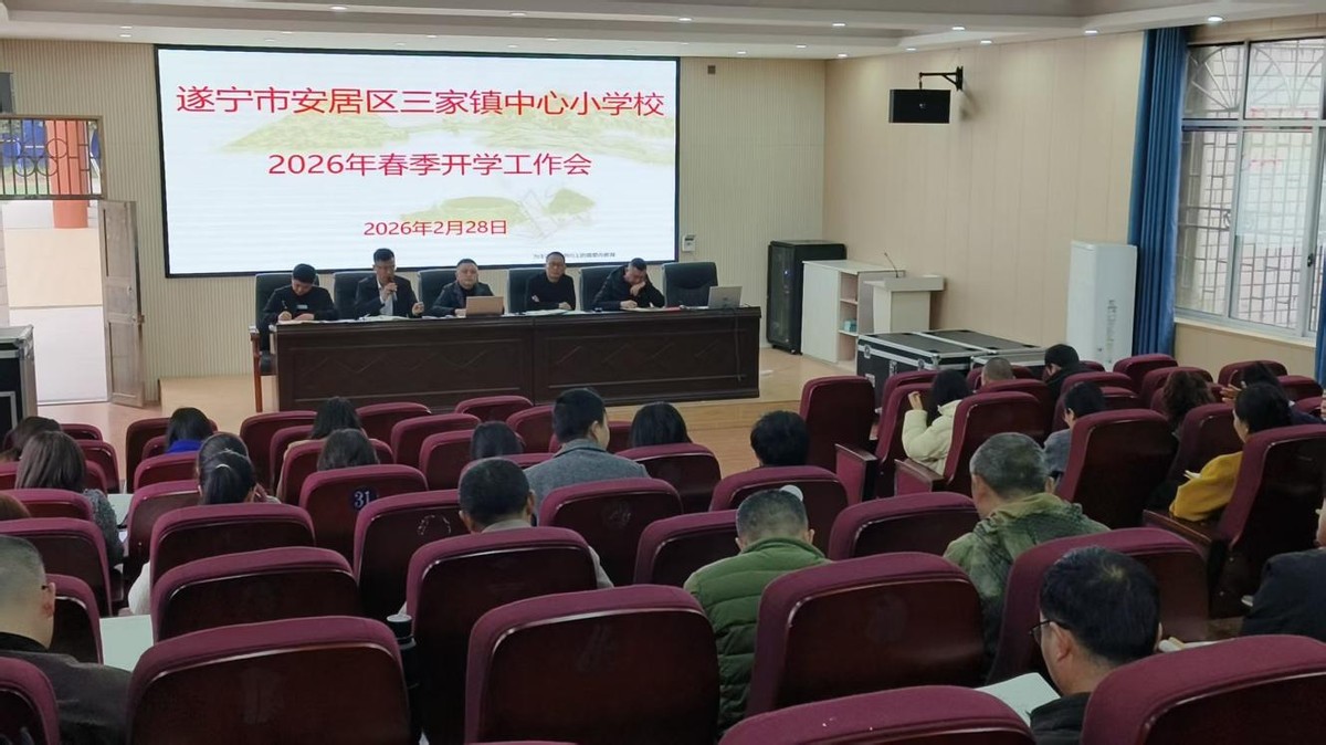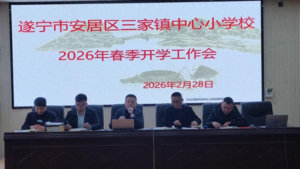 2月28日,遂宁市安居区三家镇中心小学校召开 2026 年春季开校全体教师工作会,旨在统一思想、明确任务、压实责任,为新学期各项工作平稳有序推进筑牢基础。